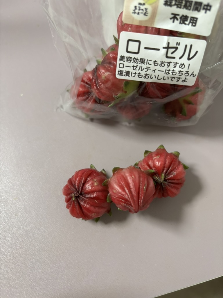実は、あのお茶の正体は花ではなく、この「ローゼル」という野菜のガク(ヘタ)の部分だったんです。